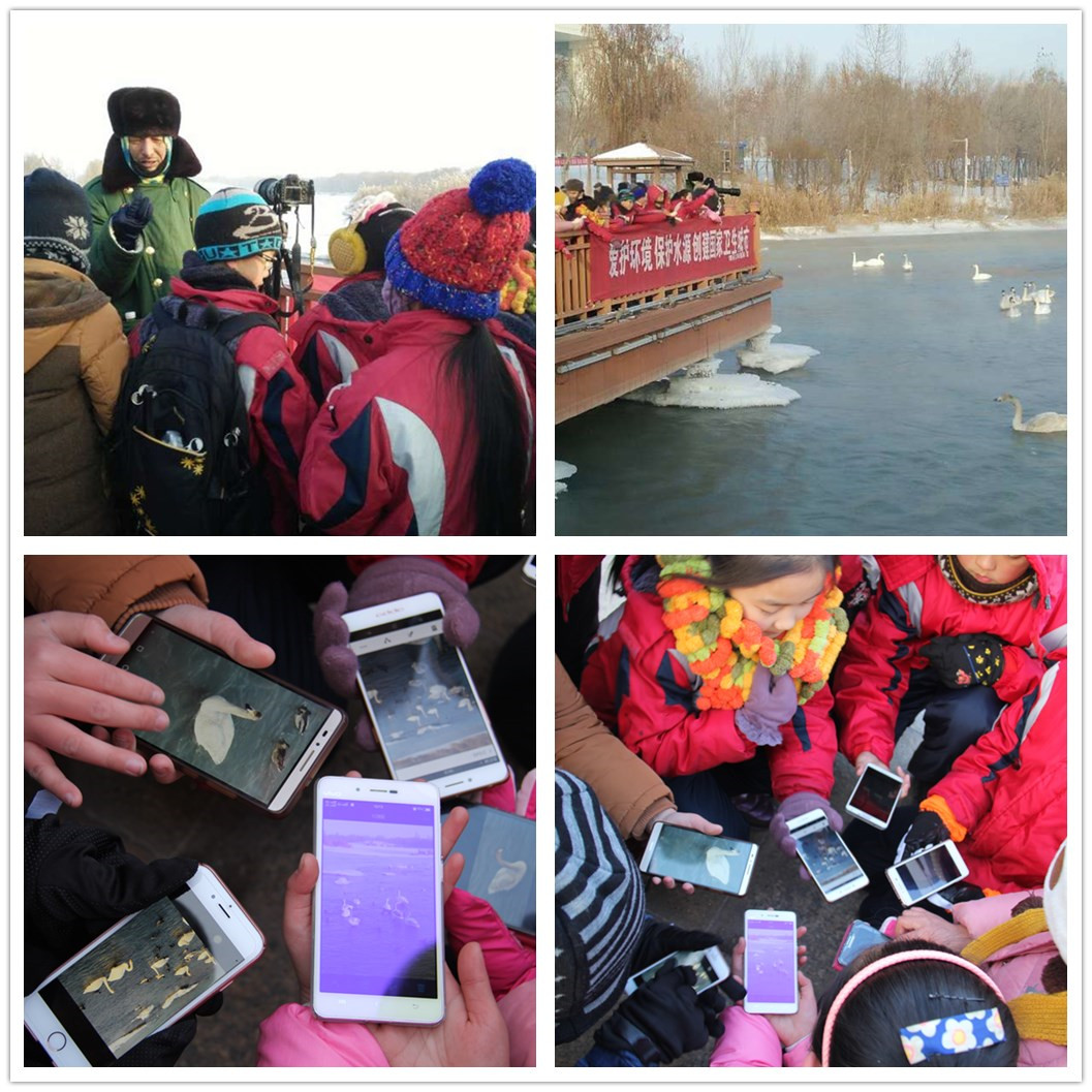 带着提前准备好的食物,孩子们来到滨河公园,给河内的天鹅喂食,近距离欣赏天鹅在河面上自由嬉戏,感受人与自然和谐相处的美景。吸引孩子们的不仅仅是美丽的天鹅,还有三脚架上支着的长焦镜头相机和执着敬业的摄影师,在摄影师的介绍下,孩子们不仅了解到了最基础的摄影知识,更感受到了当今和谐生态环境来之不易,需要每个人来保护、来宣传。受摄影师的感染,孩子们纷纷要来父母的手机,冒着严寒,静静地举起小手,用镜头记录美景,让和谐定格永恒。